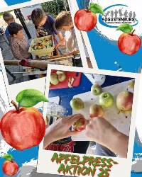 Frischer Apfelsaft aus eigener Produktion – Apfelsaftpressaktion an der...